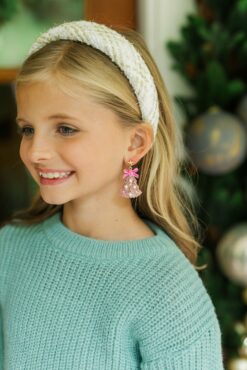 Girls: Happy Holidays Pink Christmas Tree Earring
