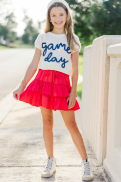 Girls: It’s Game Day Crimson/White Puff Sleeve Sweater