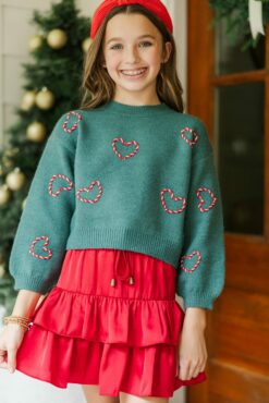 Girls: The Laura Emerald Candy Cane Heart Sweater
