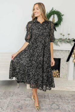 NURSING COLLECTION: Love Found Black Textured Tiered Midi Dress