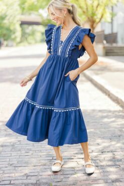 Ready For The Day Navy Blue Ruffled Midi Dress