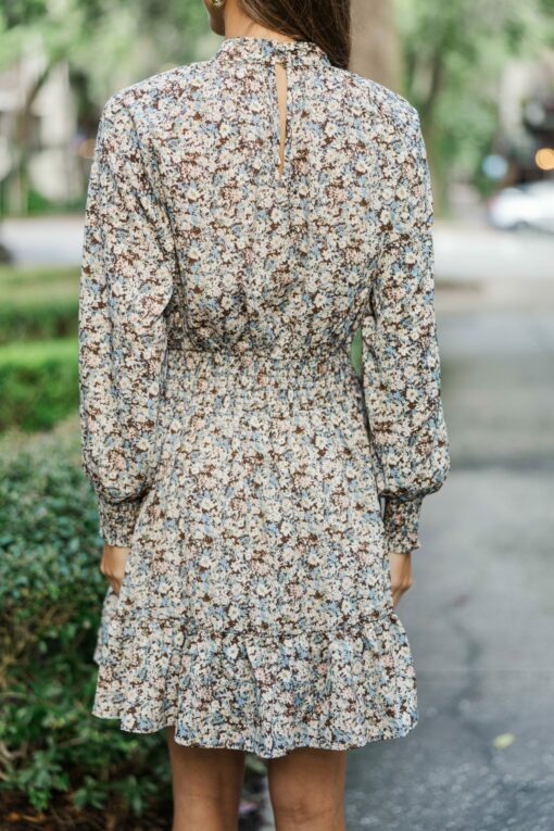 This dress truly has it all! That ditsy floral print is so cute and we love those hues! The smocked waist also makes it super flattering while keeping it perfectly comfy. This long sleeves dress is gong to look great on you! Round neckline Button keyhole back Long sleeves Smocked waist Ditsy floral print No stretch Sydney is wearing the small.