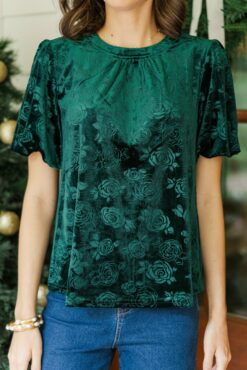 This velvet blouse is the perfect combination of casual and chic! The velvet fabric and the floral impression give this blouse a dressier feel while the classic feet keeps it super comfy! This blouse is going to look great with jeans, wide leg pants, or skirts! Round neckline Button keyhole back Short bubble sleeves Velvet fabric with a floral impression Fair stretch Savannah is wearing the small.
