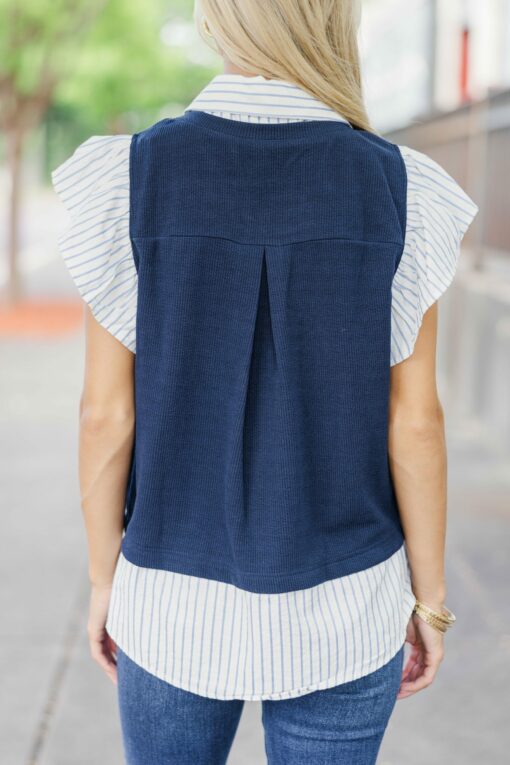 All together now, let’s say all the reasons we adore this blouse! We love that faux layered look and the classic vibes it gives! The striped print is super cute and love the ruffled detailing. This blouse is going to look great in and out of the office! Collared neckline Short ruffled sleeves Striped faux layer Fair stretch Baileigh is wearing the small.