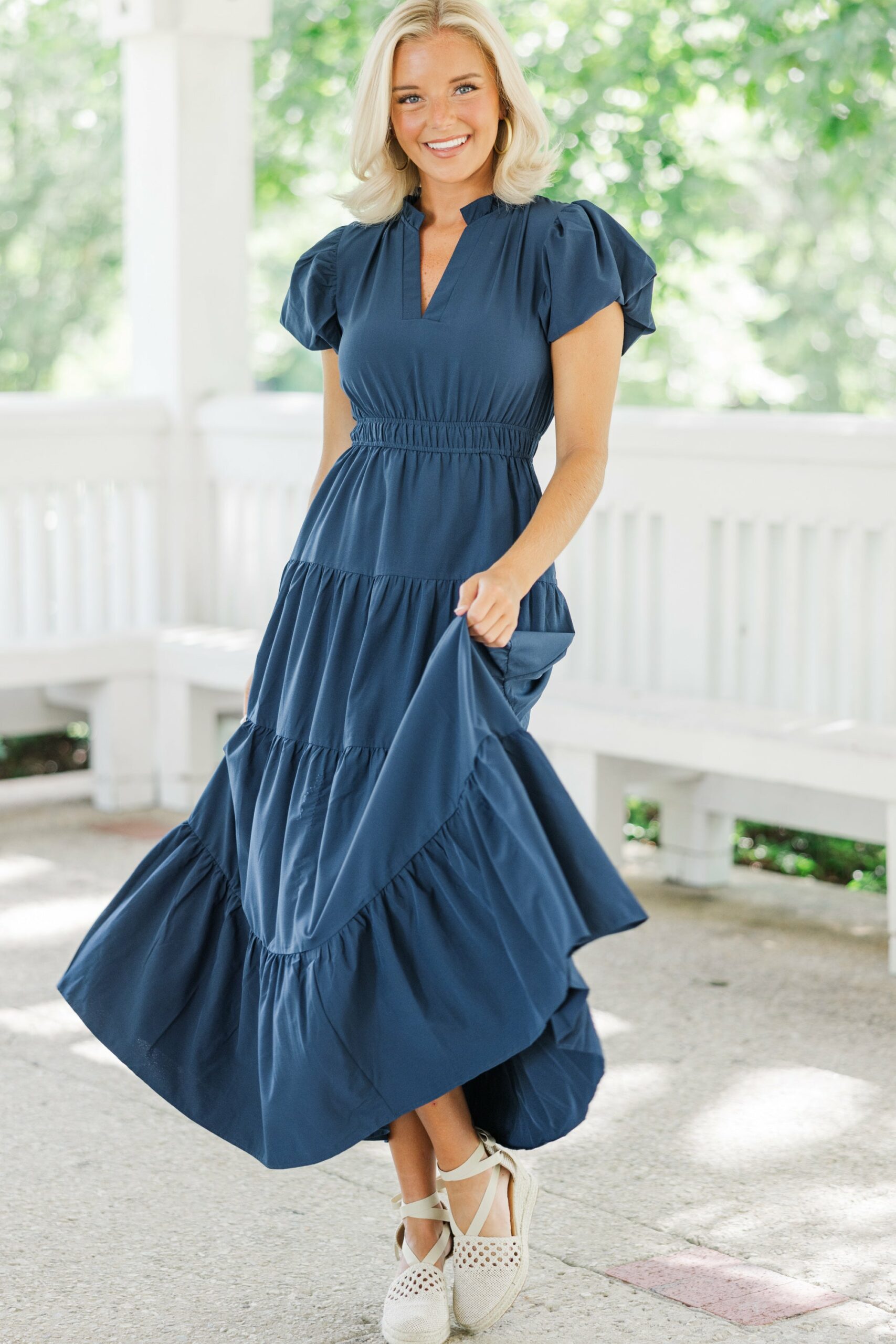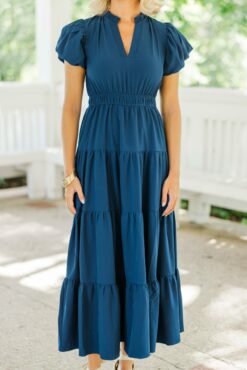 You will be coming back for this midi dress time and time again! It’s the perfect combination of comfy, cute, and flattering! The elastic waist helps create a flattering silhouette and those bubble sleeves are super feminine. Plus, that color is perfect for the fall! Split v-neck Short bubble sleeves Ruffled detailing Elastic waist Tiered body Fair amount of stretch however the elastic extends the waist Payton is wearing the small.