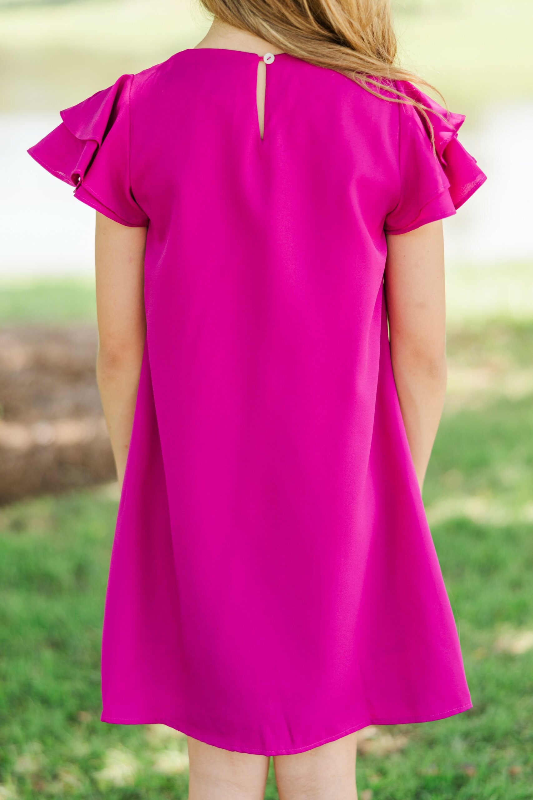 Beauty abounds with this precious shift dress! Those fluttering ruffled sleeves are too cute and so wonderfully girly! If you are wanting your girl to look her absolute Sunday best then this beauty is a perfect choice! Round neckline Button keyhole back Ruffled cap sleeves Classic shift fit Fair amount of stretch Morgan is wearing the small.