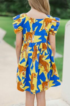 This dress will surely make your tween a standout at your tailgate! This boldly printed dress is so much fun! This dress is going to be such an easy go to for football season! Round neckline Zip back closure Short sleeves Star/tiger print Babydoll cut No stretch Morgan is wearing the small.