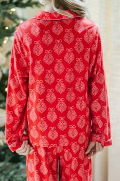 You and your girl plan on staying in a lot this holiday season? Or at least plan on staying with family and friends for Christmas eve? Then these pajamas are perfect for her! They are so cute and totally comfy! These classic pjs are going to have her feeling festive and fun this holiday season! Top Collared neckline Button down front closure Long sleeves Holiday medallion print Generous stretch Bottoms Elastic waist Holiday medallion print Generous stretch Annistyn is wearing the 7/8.