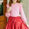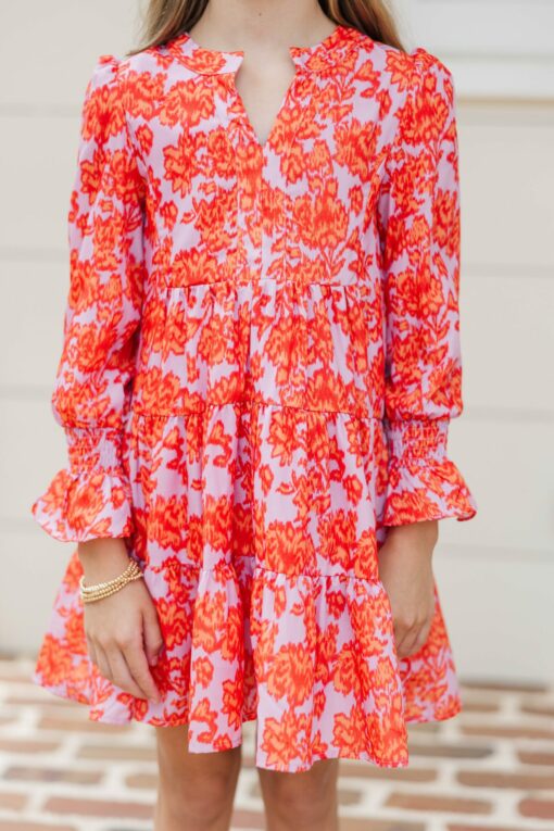 This bold dress is so cute! We know your daughter is going to love that print and the tiered flowy cut of this dress. This dress is going to look great for school pictures, family photos, or Sunday church. V-neckline Long sleeves with smocked cuffs Tiered body Abstract floral print No stretch Morgan is wearing the small
