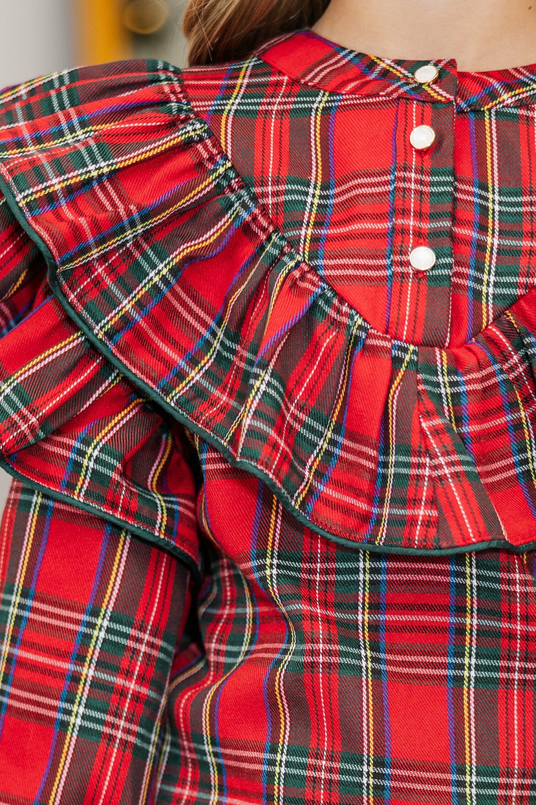Anything is possible in this plaid blouse! At least, that’s how your girl is going to feel! This ruffled beauty is going to make a perfect addition to her winter wardrobe! Round neckline Button down front closure Long bubble sleeves Dramatic ruffled detailing Plaid print No stretch Annistyn is wearing the size 7/8.