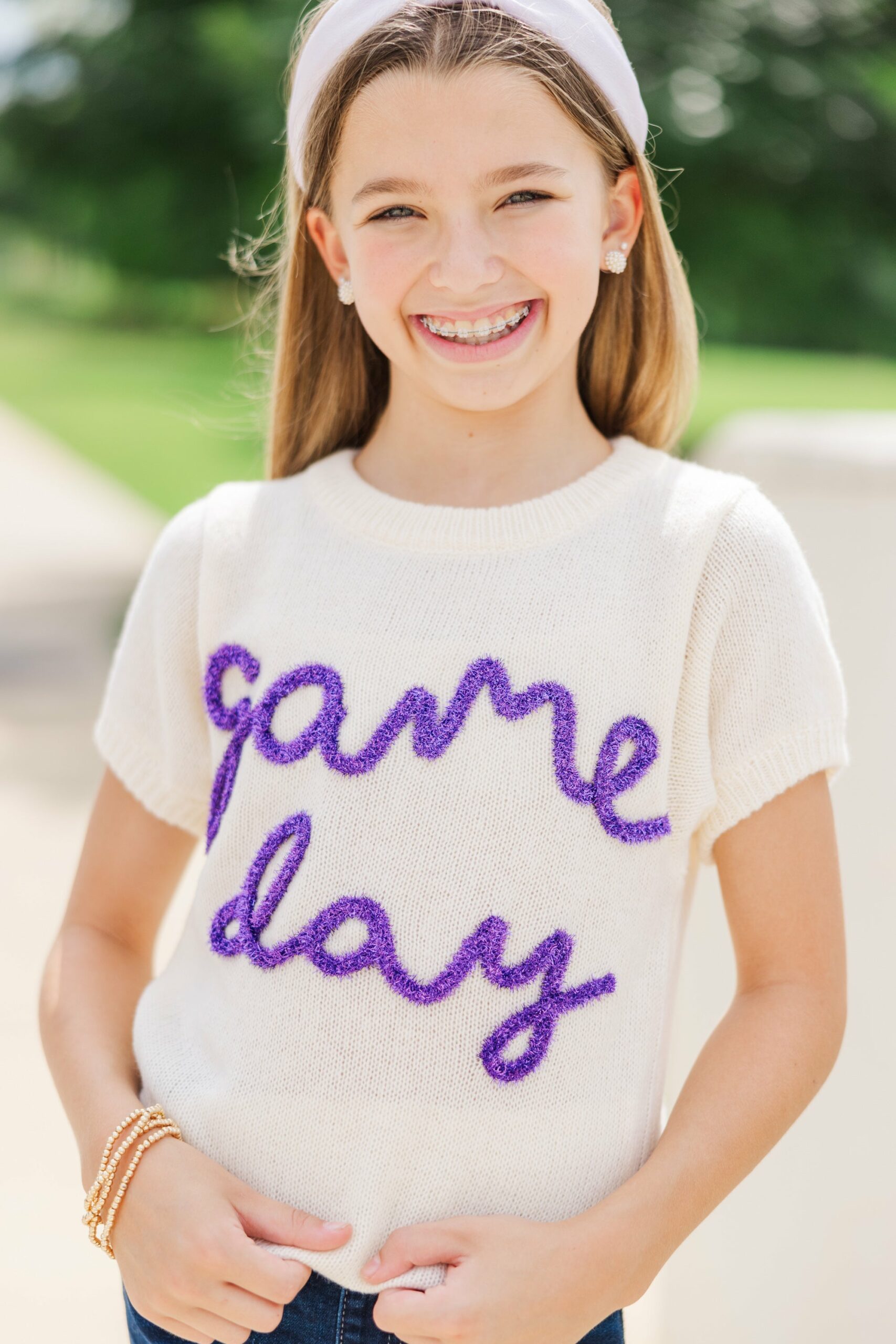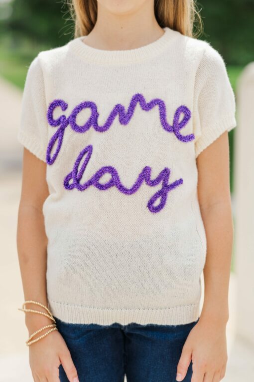 Like the sweater says, it’s gameday! Making this fun sweater a must have this fall in your girls wardrobe! We love that it’s a short sleeve sweater too since they are right on trend! But the adorable puff sleeves and that metallic lettering are the real winners here! Round neckline Short puff sleeves Metallic lettering Generous stretch Morgan is wearing the small.