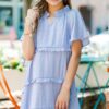 Your tween is going to feel so free to be perfectly herself in this adorable little dress! It’s trendy coloring allows for easy styling and we love the classic babydoll fit! This dress is going to be so perfect for so many occasions! V-neckline Short flutter sleeves Ruffled detailing Babydoll cut No stretch Morgan is wearing the small.