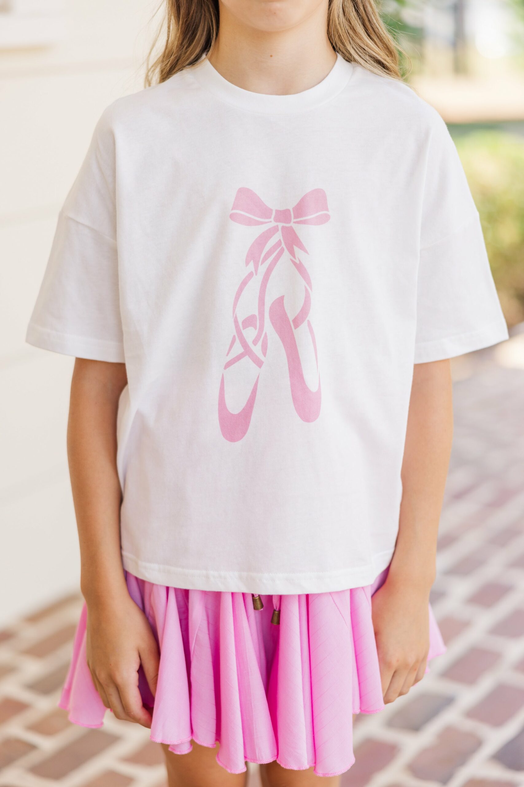 Is your girl into ballet or just girly things in general? Well then, we have the graphic tee for her! This ballet slipper graphic is just so girly and cute! This adorable graphic tee is going to look great with both jeans and shorts! Crew neckline Short sleeves with drop shoulders Cute graphic Generous stretch Morgan is wearing the small.