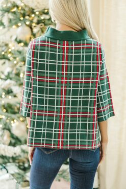 We think you are going to absolutely love this sweater! It’s perfect for the holiday season! That print and those hues are so classic together and we love the cozy mock neck. Mock neckline 3/4 sleeves Plaid print Generous stretch Baileigh is wearing the small.