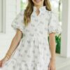 Listen to your heart if it’s telling you need this maxi dress! It’s so feminine and perfectly conservative. This maxi is perfect for Sunday church, family photos, or weddings. Round neckline Button keyhole back Ruffled cap sleeves Floral print No stretch Sydney is wearing the small.