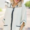 This cardigan is the definition of class! That fit and those neutral hues are perfection together. Plus, we love that this cardigan can be worn as a layering piece or as full sweater. Round neckline Button down front closure Long sleeves Striped print Generous stretch Baileigh is wearing the small.