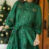 There is lots to love about this nursing friendly dress! That classic fit and gorgeous hue are perfection together! Plus, this dress is the perfect combination of style and function with that hidden zipper under the bust. Partial button down collared neckline Hidden zipper under the bust that can unzip all the way across from either side Long bubble sleeves No stretch Baileigh is wearing the small.