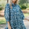 This printed dress is just so classy and chic! We love the print and obviously those colors! This dress is going to look great for date nights, work, or brunch. Collared neckline Button down front closure Short bubble sleeves Damask print No stretch Baileigh is wearing the small.