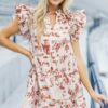 You are going to feel so classy and chic in this shimmering beauty! That flowy fabric has the most beautiful sheen to it! Plus, that fit is the perfect combination of flattering and comfy! Mock neckline Tie back closure Short sleeves Defined waist Shimmery fabric No stretch Sydney is wearing the small.