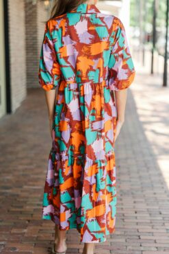 This abstract midi dress is so bold and fun! We are so in love with all of those colors! The classic cut of this midi is also very comfy and flattering. You truly can’t go wrong with this one! Collared partial button neckline Short bubble sleeves Abstract print No stretch Sydney is wearing the small.