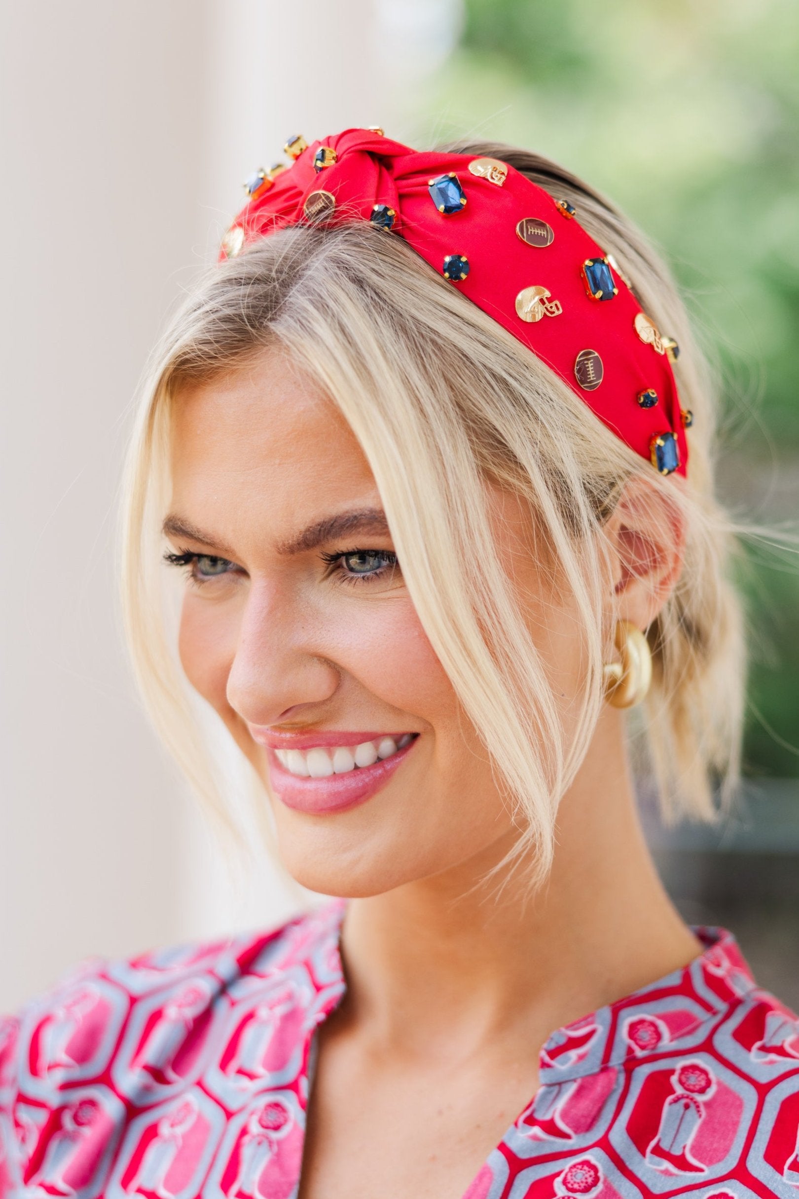 This embellished headband practically has game day written all over it! We love the combination of rhinestones, footballs, and little helmets! This headband is going to be the perfect finishing touch for your gameday look!